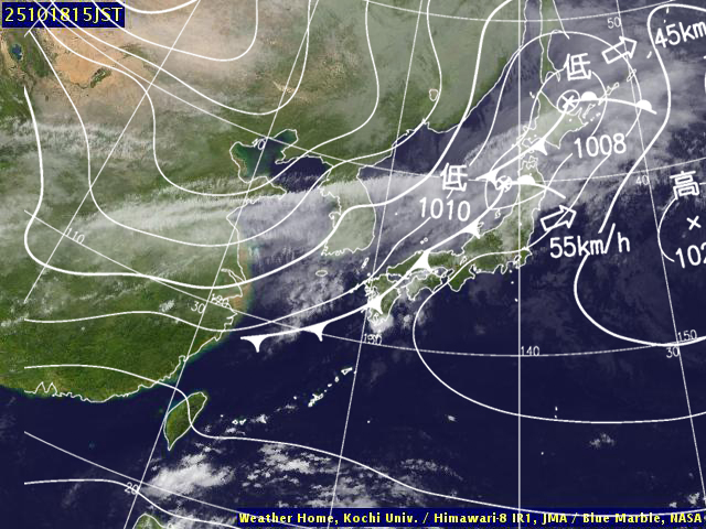 | 地上(高知大学気象情報頁赤外画像と気象庁速報天気図を合成) | |||