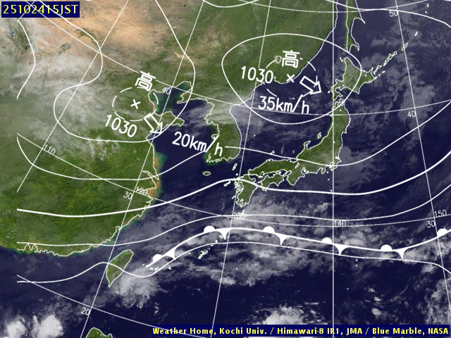 (高知大学気象情報頁赤外画像と気象庁速報天気図を合成)