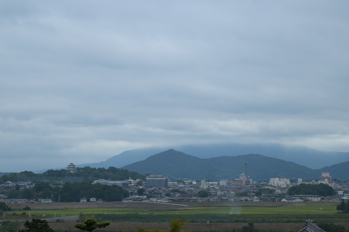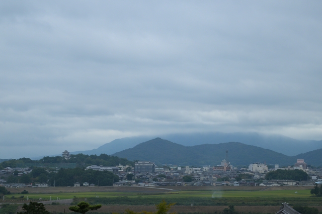 伊賀盆地では午前から雨が降り始め、盆地の低山も雲底に
