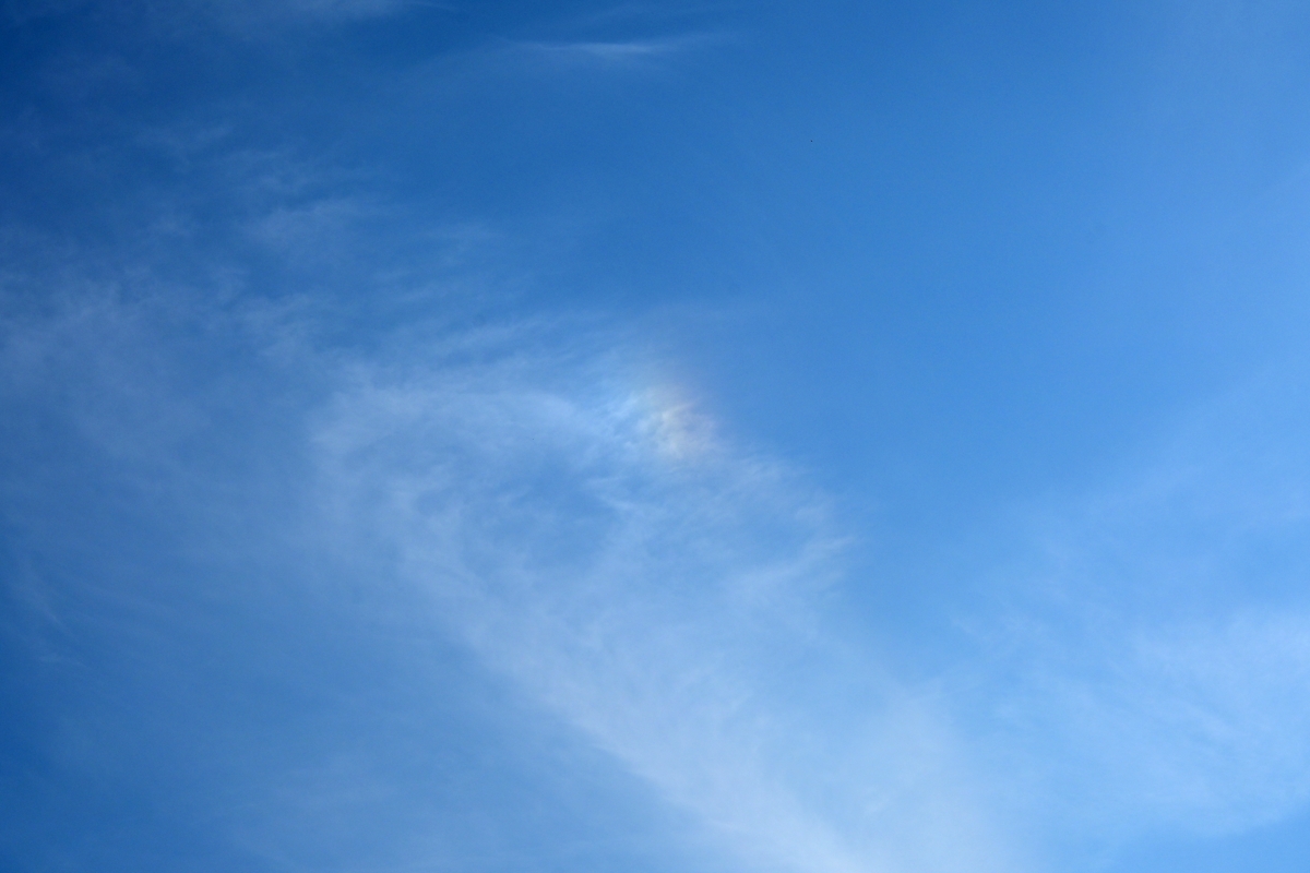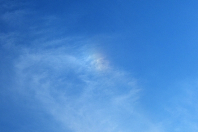 移動性高気圧の後面に入って、青空に巻雲や巻層雲。 ハロは現れず、時々淡い幻日が見られました。 風は穏やかで、夕方は南よりの暖かい風になりました。 |
