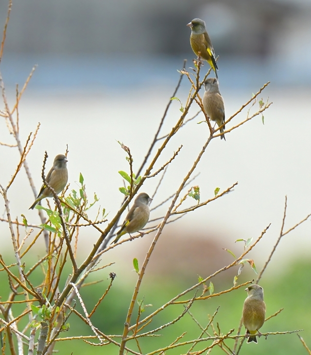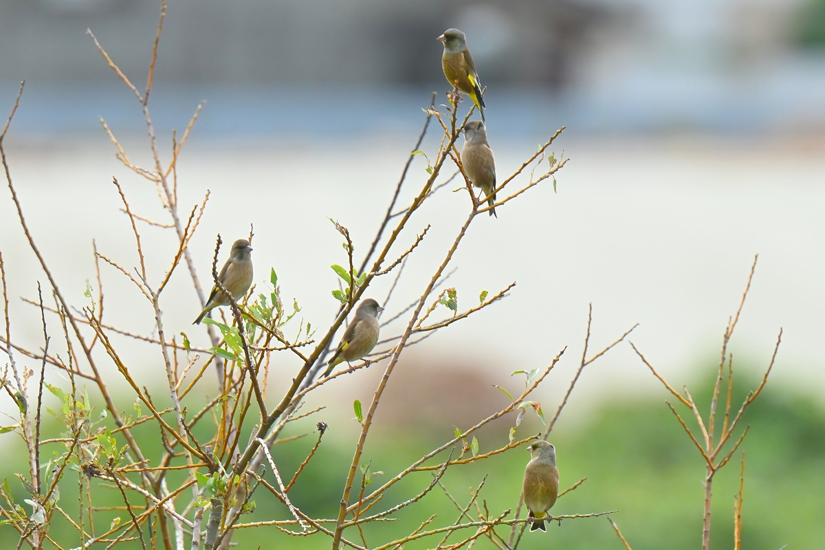 | カワラヒワ | 身を啄むヒヨドリ | ||