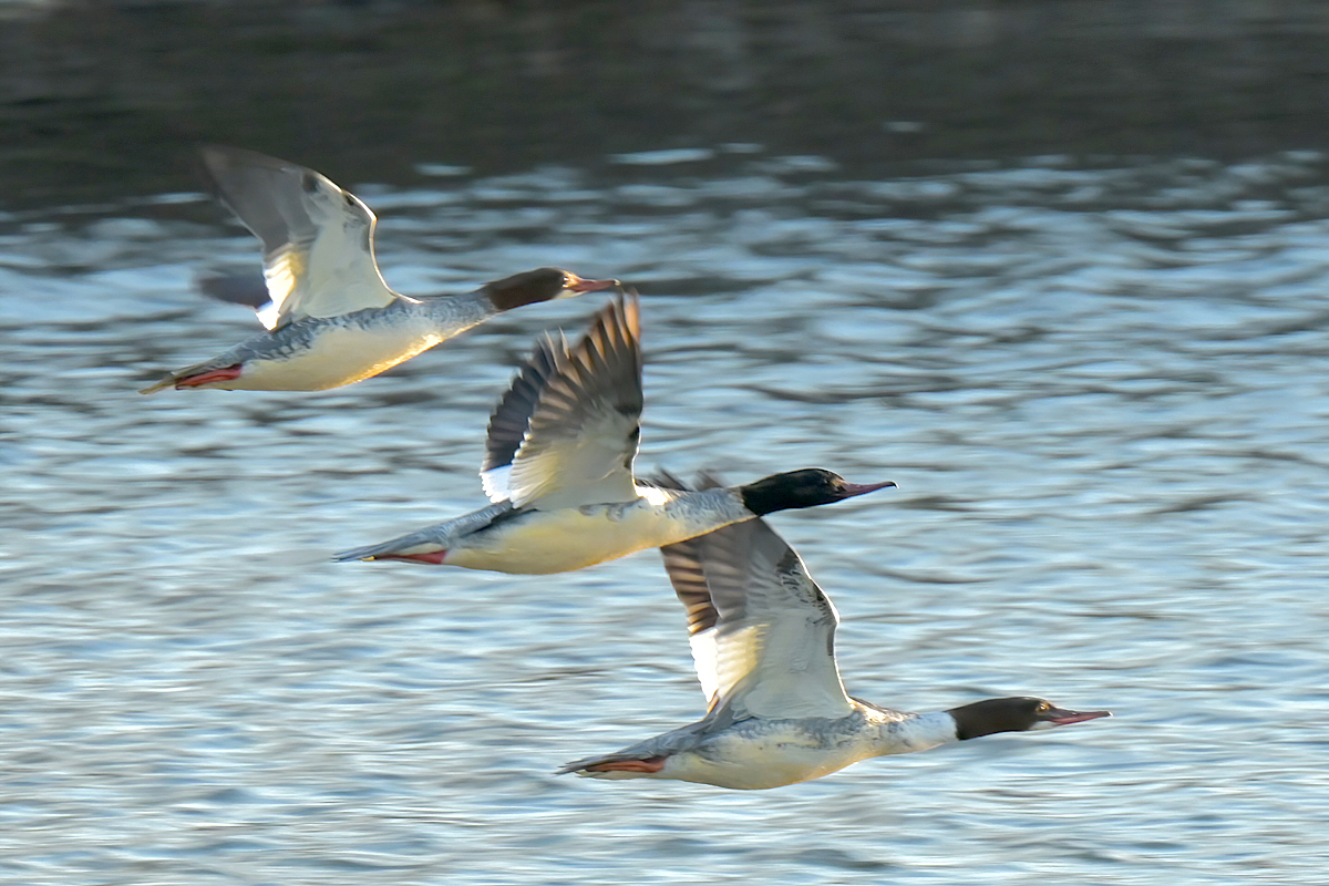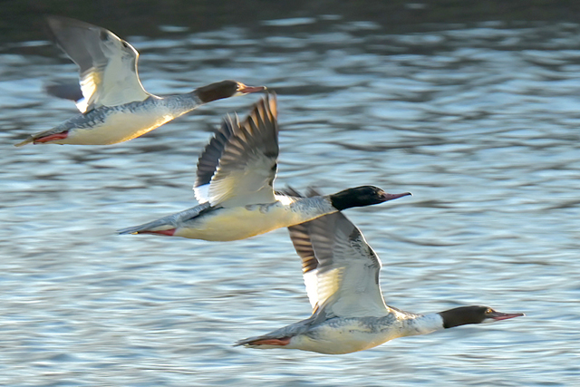 | ジョウビタキ(♀) | カワアイサ(♀) 5羽の群れ 桑名市の員弁川にて。 |