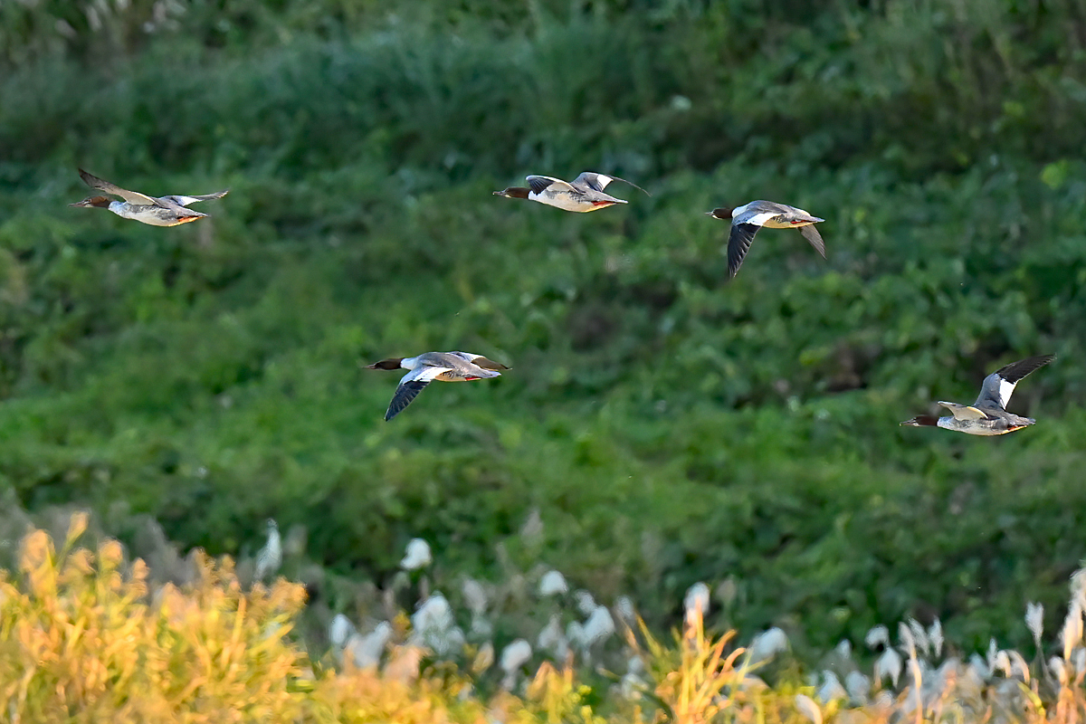 | トビ | カワアイサ(♀)5羽の群れ | ||