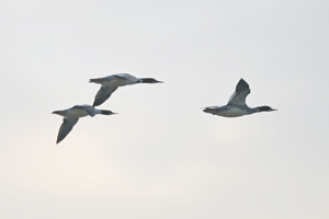 菰野町の森林にて、ソウシチョウ・エナガ・ルリビタキ(オス)。 サルも20匹近くいました。こちらに気づくとすぐ逃げるが、さすがに怖い。 夕方、桑名市の員弁川にて、カワアイサ・クイナ。 |