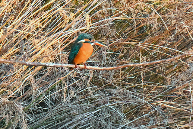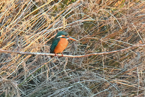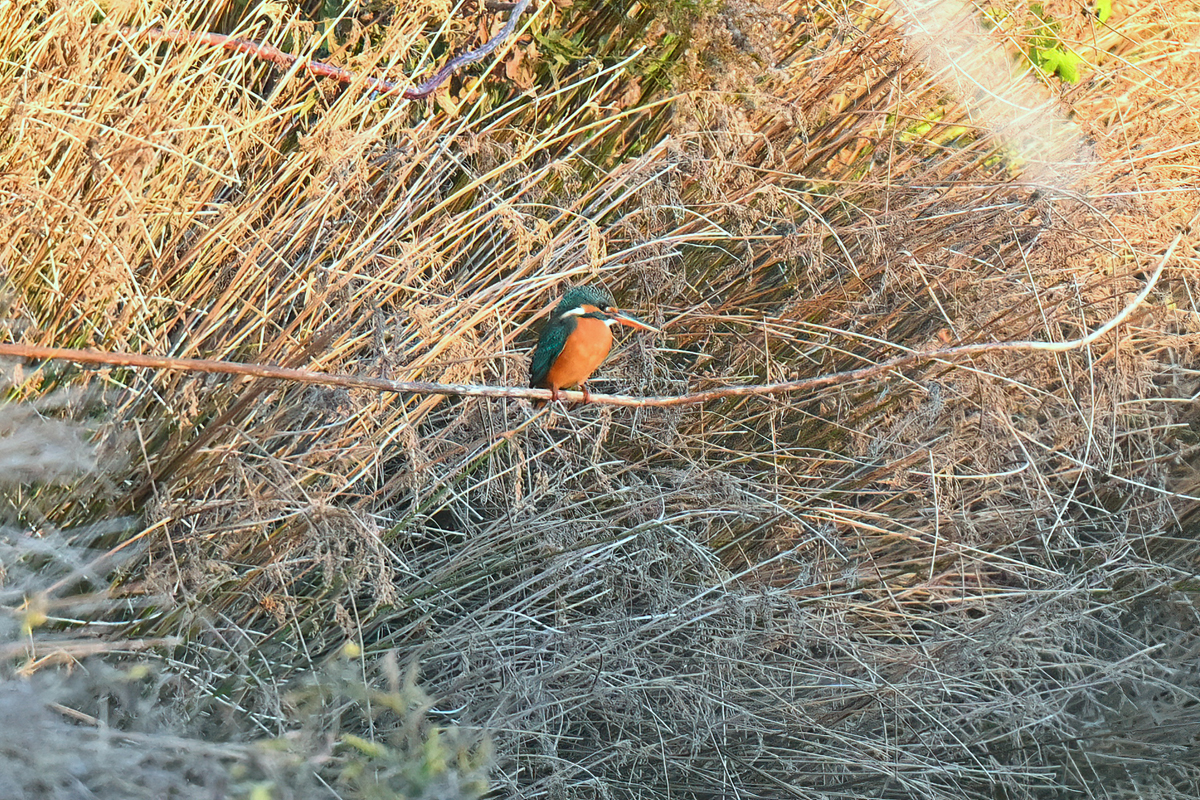 昼過ぎの揖斐川にて。 冬の水鳥の状況を確認しにいったところ、アシ原との境付近に お気に入りの鳥である、カンムリカイツブリが来ていました。 水辺にいたのはちょっと意外でしたが、5羽のケリ。 夕方の員弁川。 中州に降りて藪漕ぎをして観察場所を作っていると、 50mほどの距離でカワセミがあらわれました。 下嘴の全体が赤くなっており、おそらく8月・9月に堤防から よく見ていた、メスの幼鳥が成長したものかと思われます。 30mほどの距離にも来たけれど、ワンタッチリターン。 これらの場所は堤防上からは見えないところで、最近、 飛翔の姿しか見られていなかった理由がわかりました。 明日以降は、今日カワセミがあらわれた場所にもう少し 近い所に中州からの観察場所を作ることになりそうです。 |