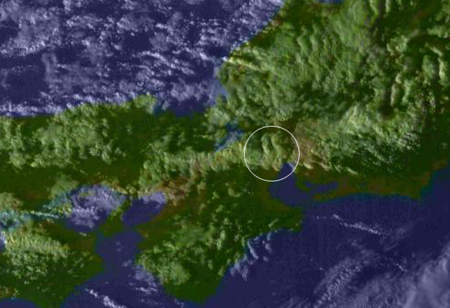 | 地上(高知大学気象情報頁赤外画像と気象庁速報天気図を合成) | |||
