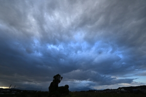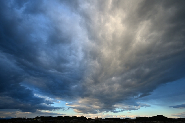 | 16:14 西北西 14mm | 色の異なる巨大な波状雲 16:18 北北東 14mm 地上からは波状雲と見えないが、 衛星可視画像の2列の波状雲に相当。 夕方の太陽光の当たり方が異なっている。 |