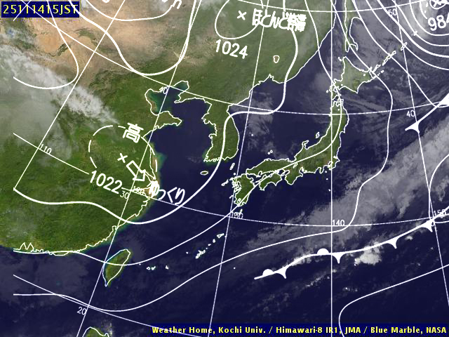(高知大学気象情報頁赤外画像と気象庁速報天気図を合成)