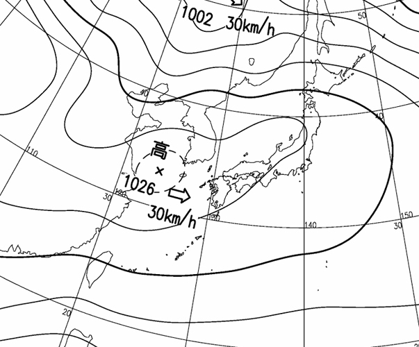 | 地上(高知大学気象情報頁赤外画像と気象庁速報天気図を合成) | |||