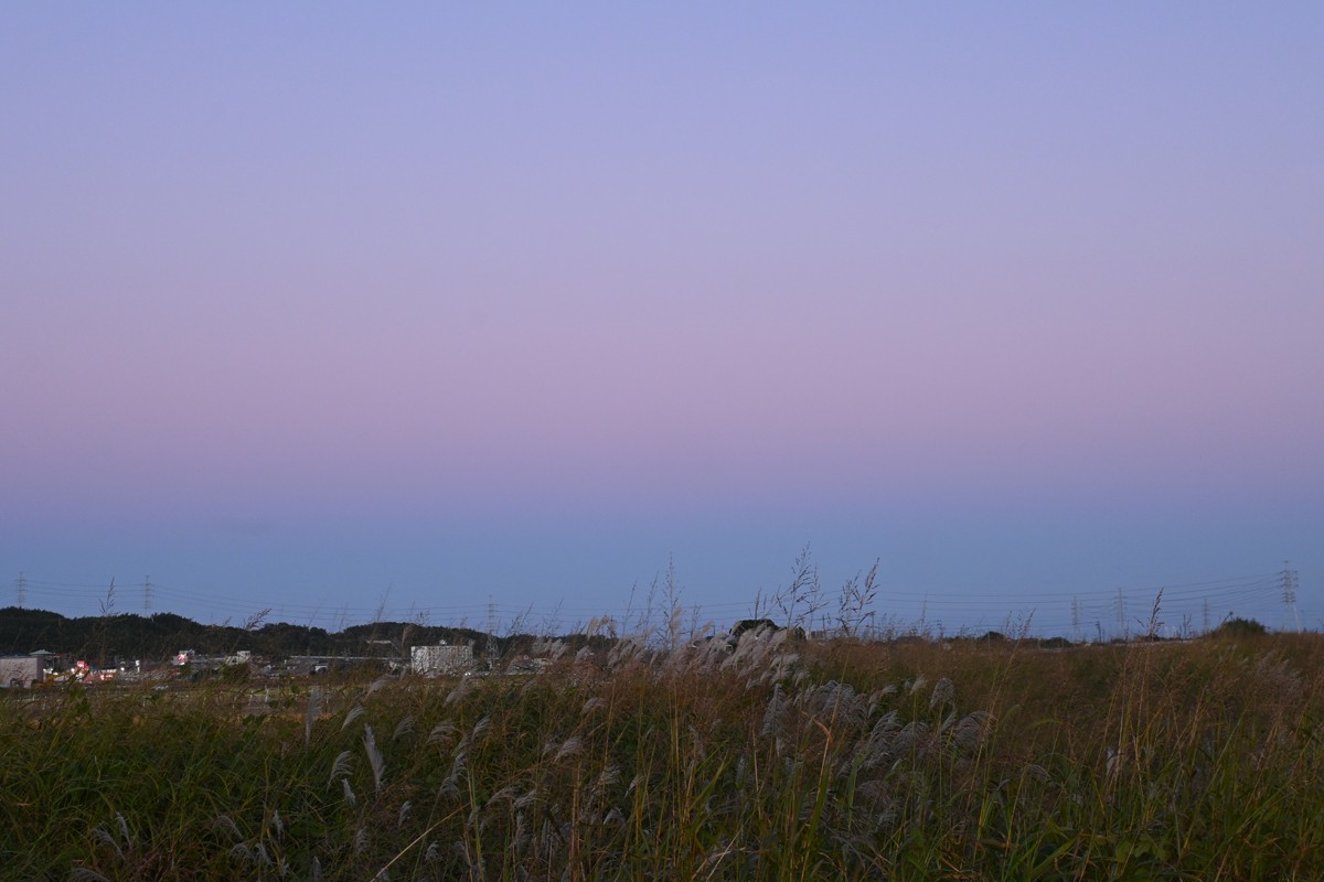 | 「小春日和、夕焼けの中に細い月」(桑名市) | |||