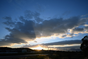 | 16:04 上が北 全周魚眼 | 日没の光芒 16:16 西南西 20mm |