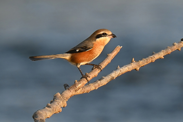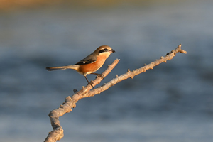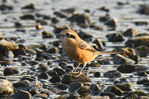 | 中州の浅瀬にモズ(♂) | |||