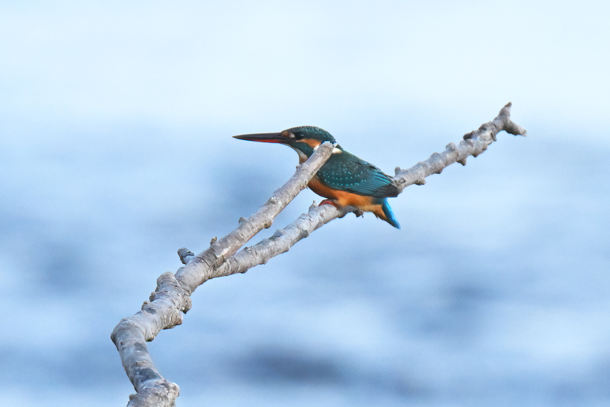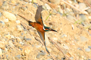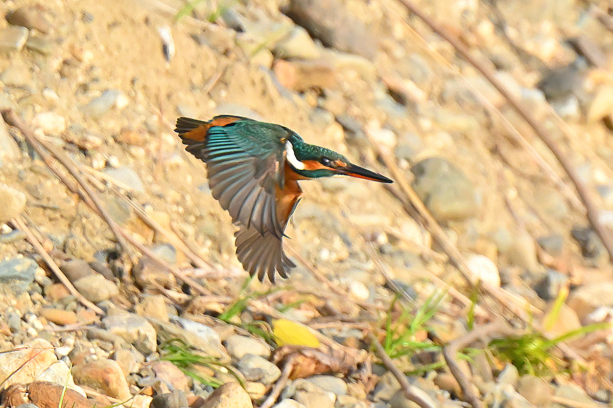 夕方、員弁川の中州にて。 カワセミ(♀)が中州の下流側で北岸付近で活動。 昨日はここに留まりませんでしたが、このメスの 個体の今シーズンはここが観察しやすいポイントに なりそう。飛び込んで魚を捕るシーンもありました。 飛翔通過は、かなりの距離を飛んでいました。 下流に150〜200mほど離れた場所では、3羽の ミサゴが旋回したり、川に着水したり。この場所で 観察を継続すれば、近距離での撮影もできそう。 今日までは、中州での観察場所を探るため、軽い機材を 持ち込みましたが、いよいよ本格的に取り組む段階です。 |