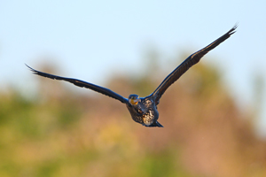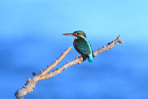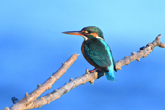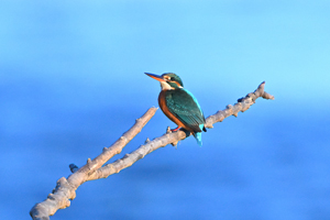 快晴の夕方、員弁川の中州にて。 下流から川に沿ってまっすぐ飛んできたカワウ。水に濡れた 光沢感に富んだ独特の黒色がなかなかきれいです。 カワセミは下流へ向かって飛翔通過し、見えない場所まで 去った後、30分ほど経過して戻ってきて倒木に留まりました。 ぎりぎり順光の陽射しを受ける時間帯で、美しい翡翠色です。 |