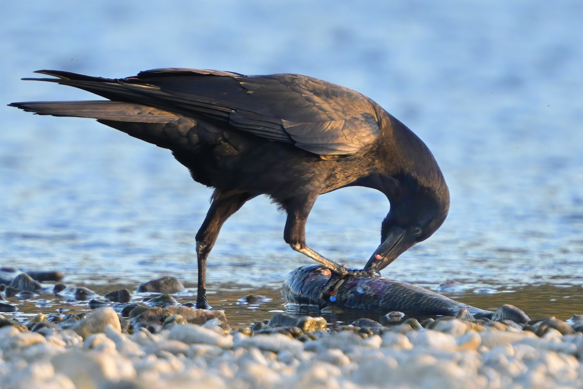 | ハシブトガラス | うち捨てられていたコイ(?) | ||
