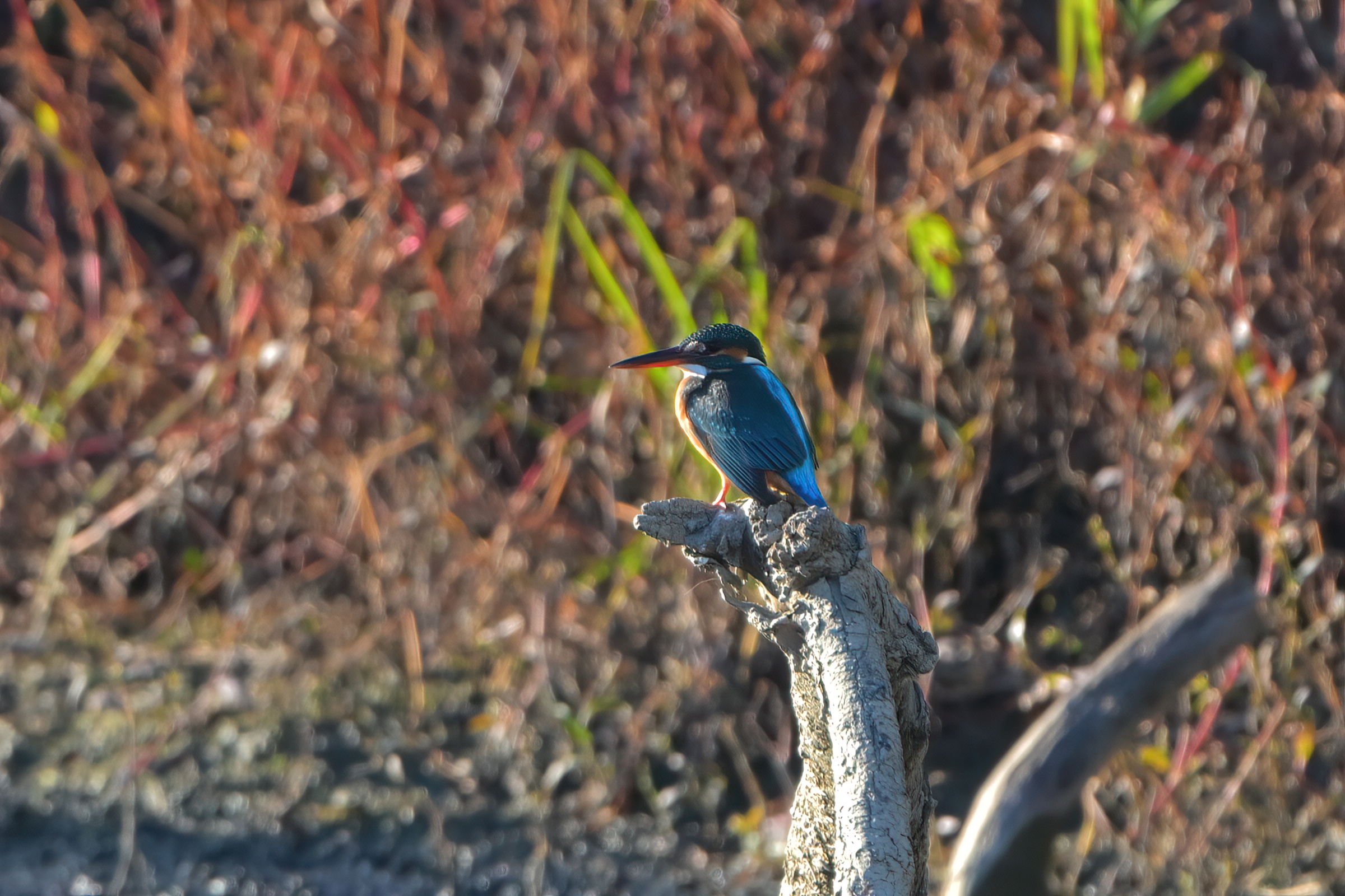 | ここでは今日は飛び込みはせず。 | 昨年のカワセミ♂の定番ポイント。 意外にも、しばらく滞在。 ここは川岸から見下ろせる場所。 |