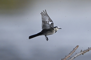 夕方、員弁川の中州にて。 今日もカワアイサ♀が川に沿って往復。 カワセミの鳴き声に振り返ると、モズとバトルしているところ。 そのまま飛び去って戻って来ず、でした。 カワセミを狙っていたポイントには代わりにハクセキレイが あらわれて、飛びながらの小さな移動を撮影してみました。 |