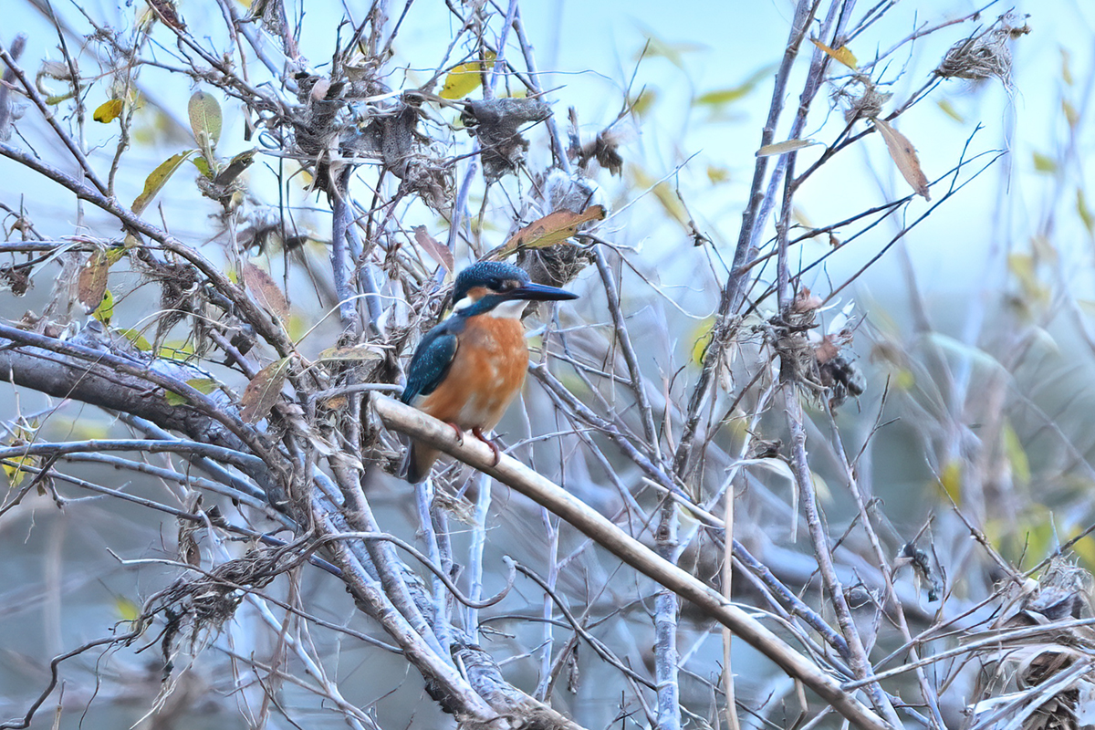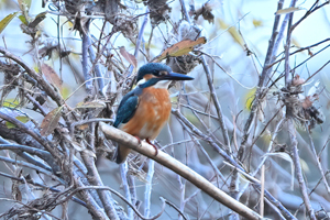 夕方、員弁川の中州にて。 日没時刻は16時43分ですが、鈴鹿山脈付近の厚い層積雲によって 太陽が山脈に沈むと早い時刻にもう日没後のような暗さになります。 カワセミが登場したのはそんな時刻(16時24分)。もう帰ろうかと、 テレコンをはずしたところでした。ちなみに今日もメスではなくオス。 しばらく転々と場所を変え、独特の鳴き声とともに対岸へ去りました。 |