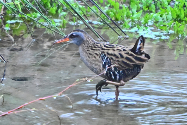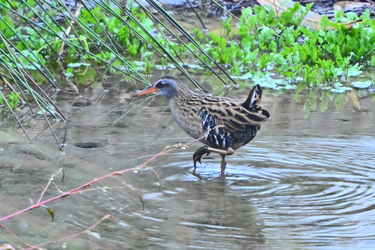 小雨降る夕方、員弁川の堤防にて。 カワセミは2度登場するも、見える範囲ではゆっくりと留まらず。 日没時刻の少し前には、暗がりで餌を求めて歩いているクイナ。 全身の見える場所に出てこないかと待ち続け、ようやく撮影。 |