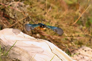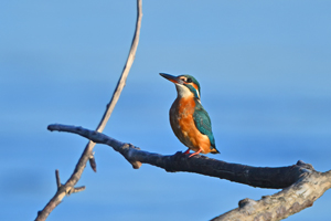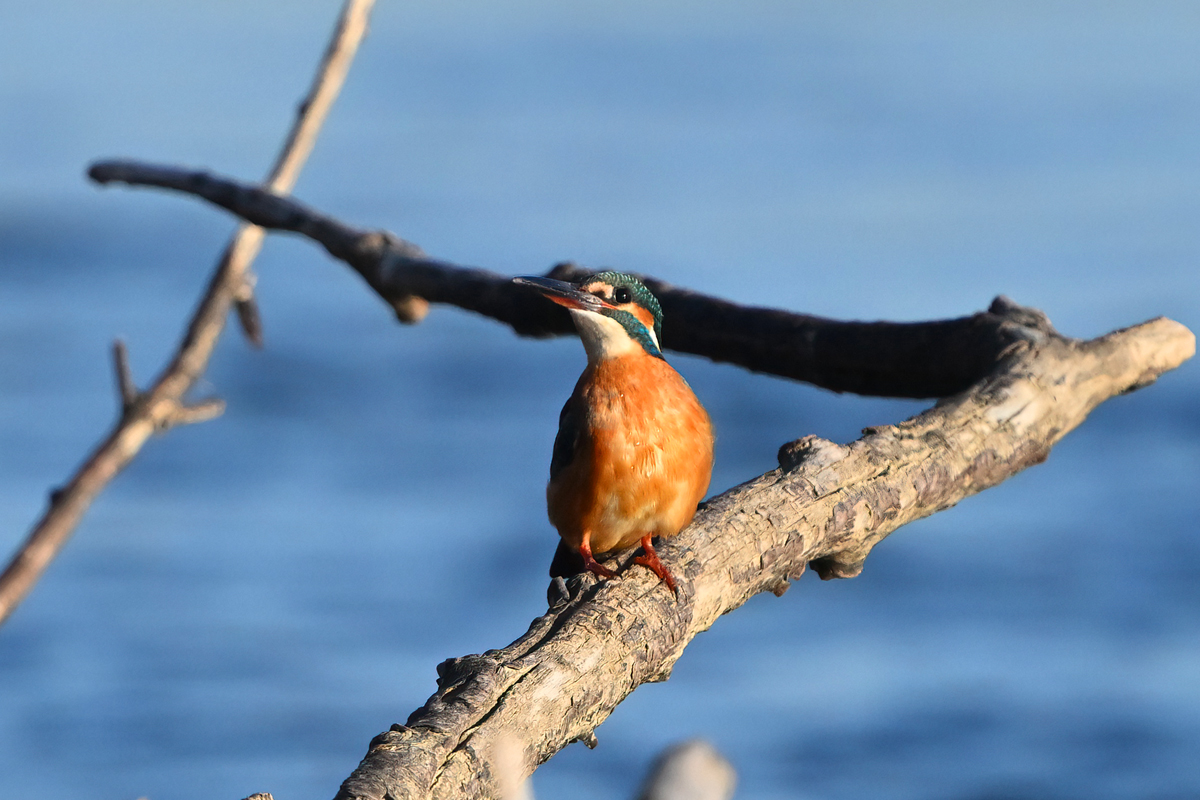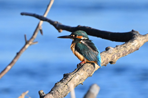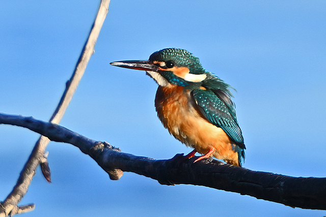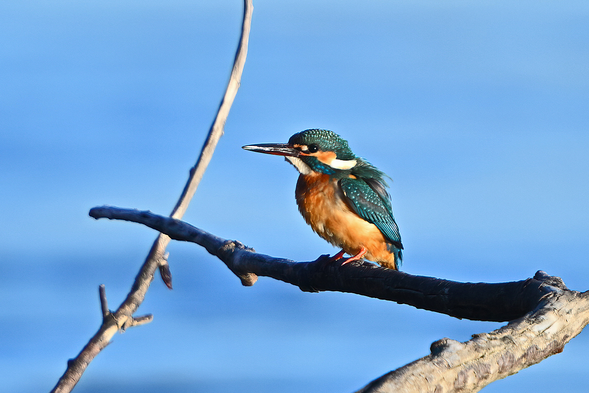 快晴の員弁川の中州にて。 まだ明るい時間帯にカワセミが下流からやってきて、流れの 中の倒木に留まりました。今日もオスの個体のようです。 この場所に来る前にすでに川への飛び込みをしていたようで 濡れて光沢のある羽毛が風にあおられている様が綺麗でした。 |