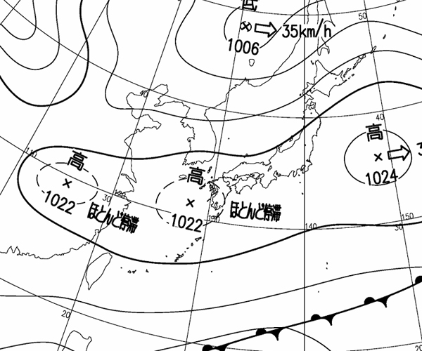 | 地上(高知大学気象情報頁赤外画像と気象庁速報天気図を合成) | |||