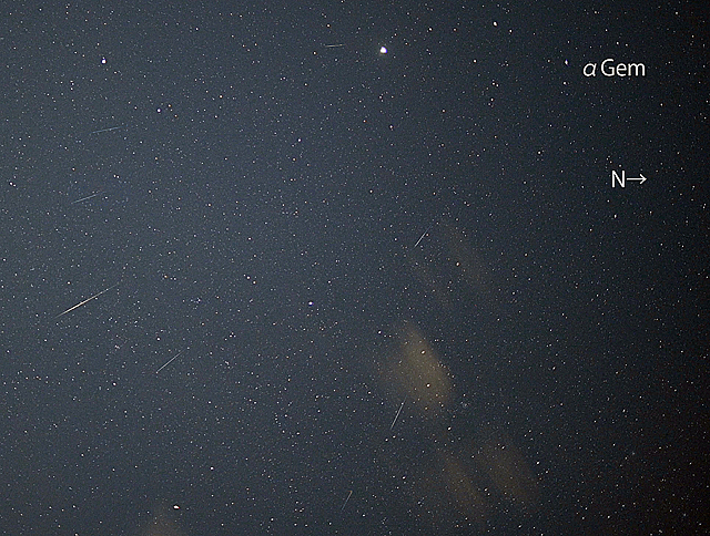ふたご座流星群(8流星を合成) 2:25〜5:10(途中、雲多し) |