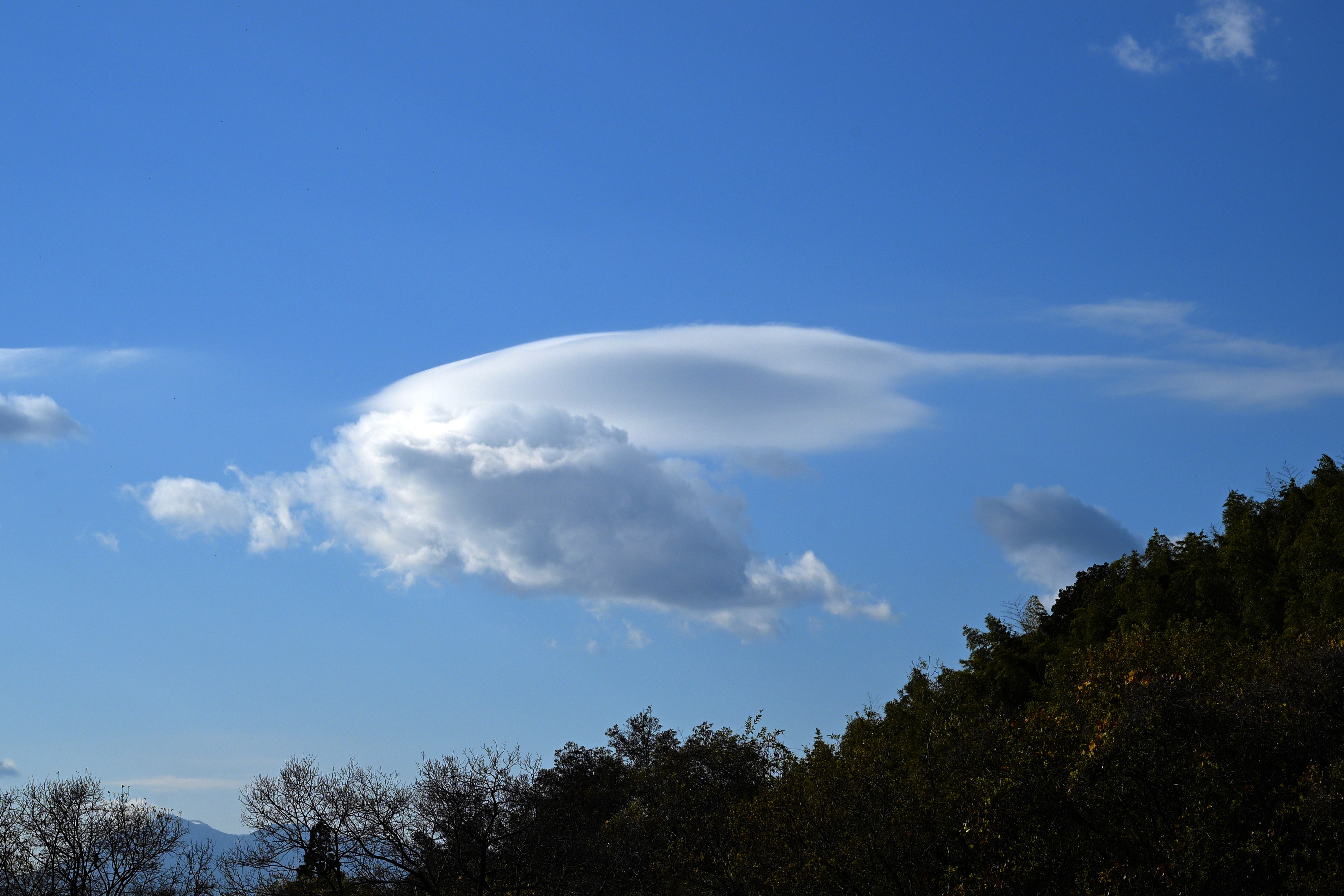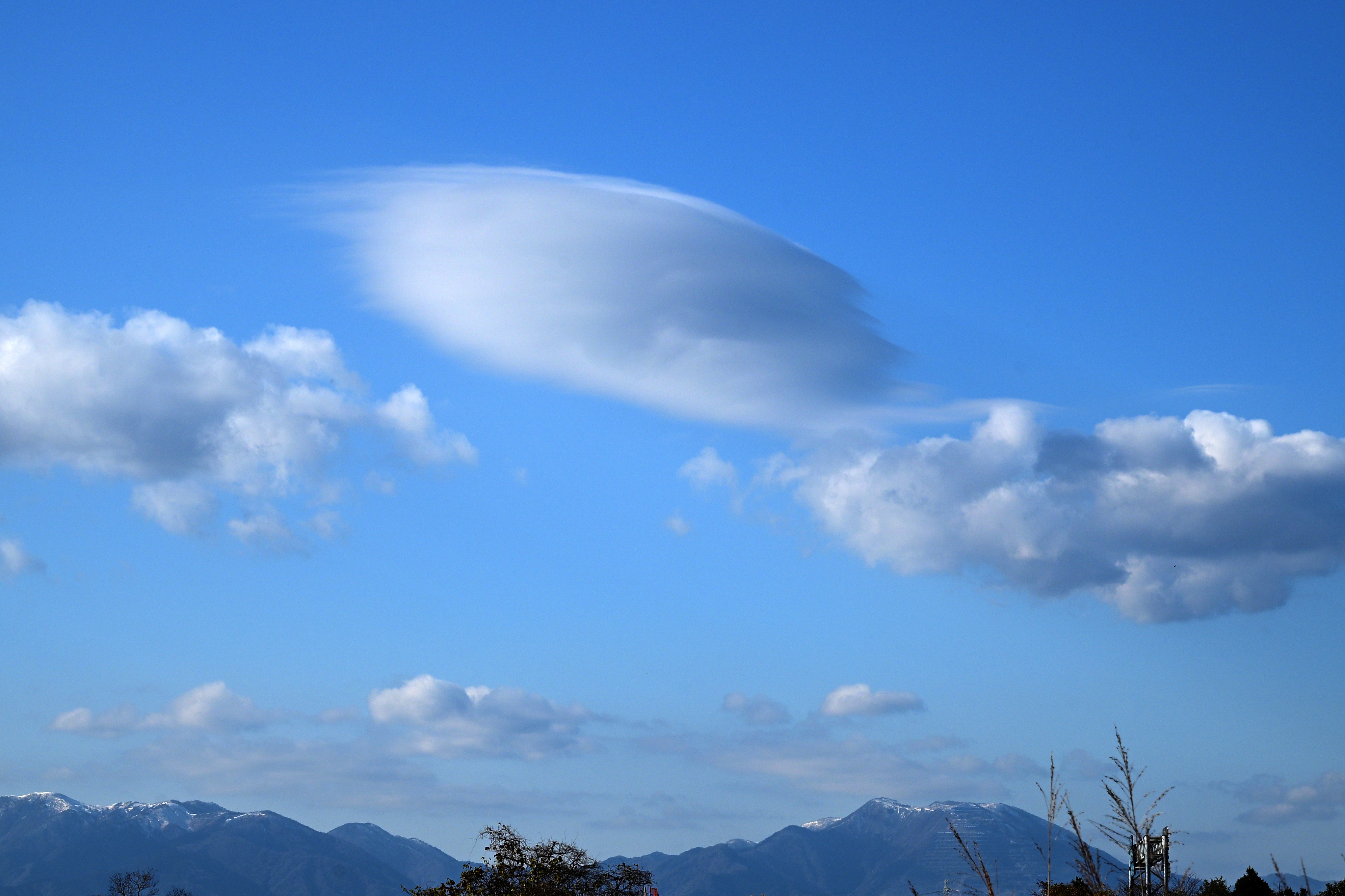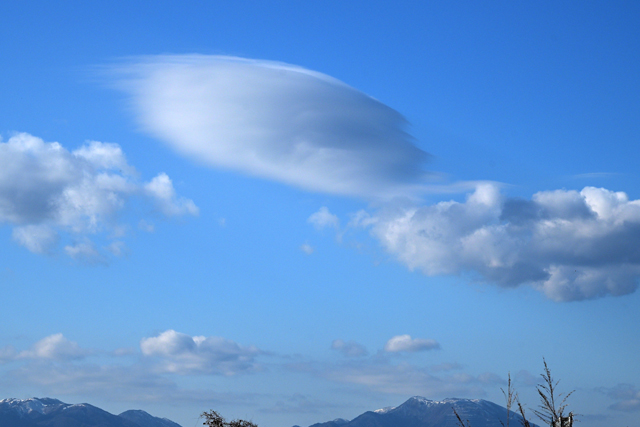 | 「積雲の上に生じるレンズ雲とずきん雲」(桑名市) | |||