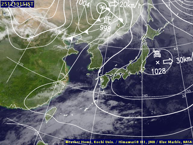 | 地上(高知大学気象情報頁赤外画像と気象庁速報天気図を合成) 15時 | |||