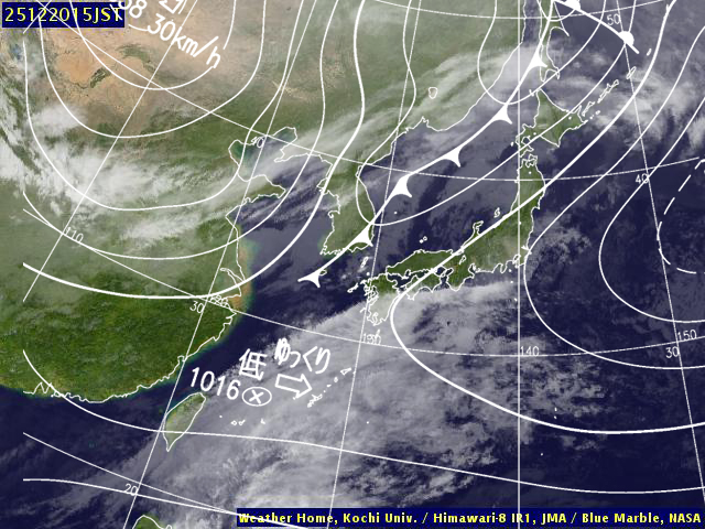 (高知大学気象情報頁赤外画像と気象庁速報天気図を合成) 15時