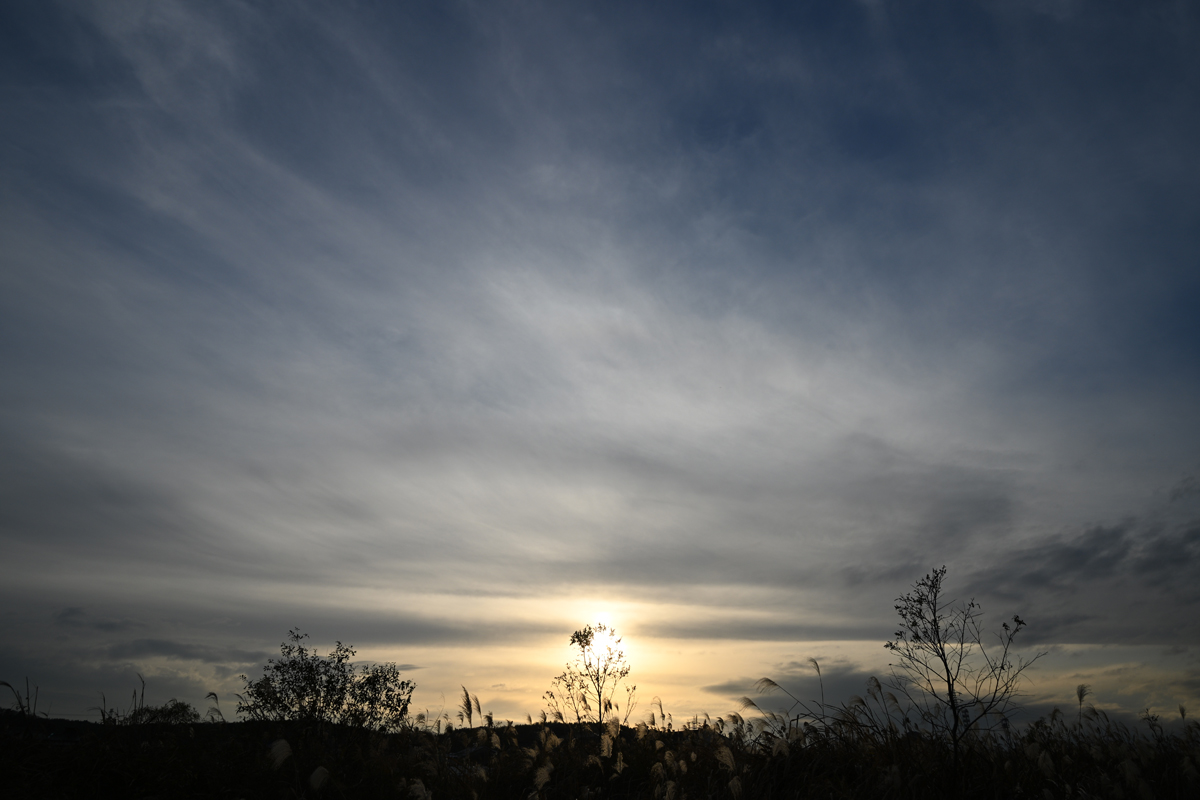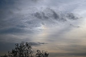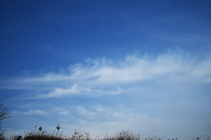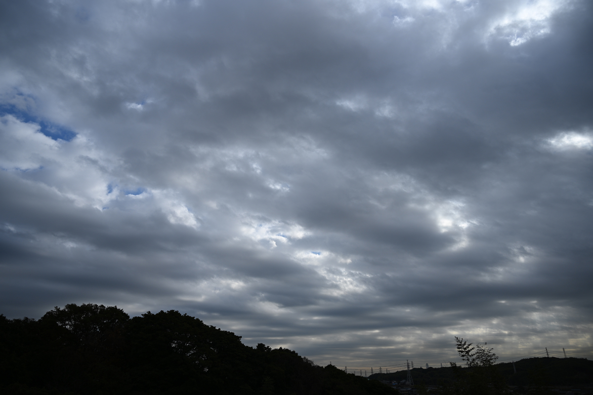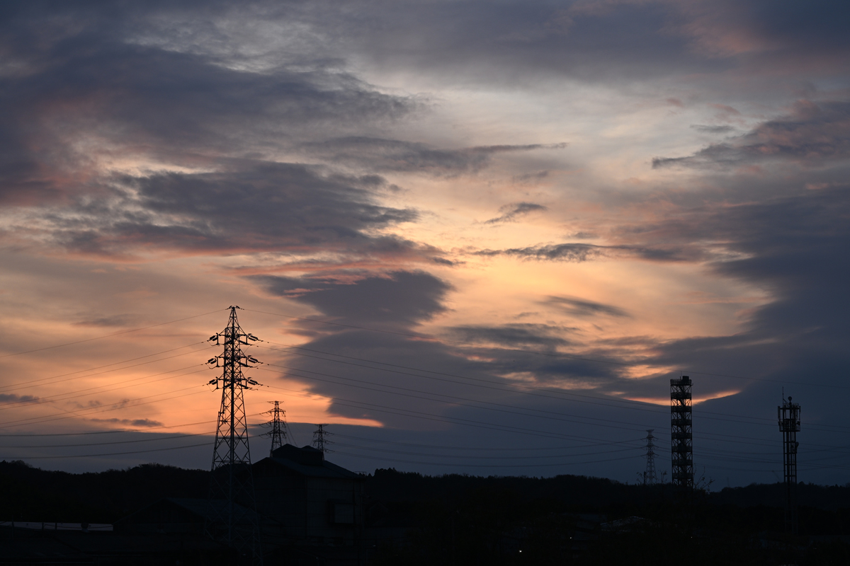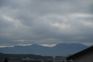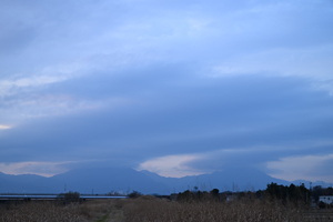 | 一時的に南から湿った空気が入って、伊勢平野には鈴鹿山脈にゆるやかに 押し寄せるような層積雲が広がりました。雲低高度はちょうど山頂付近。 夕方には中層の風の影響を受けて、山岳ごとに笠雲・つるし雲が発生。 |