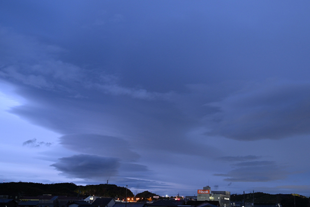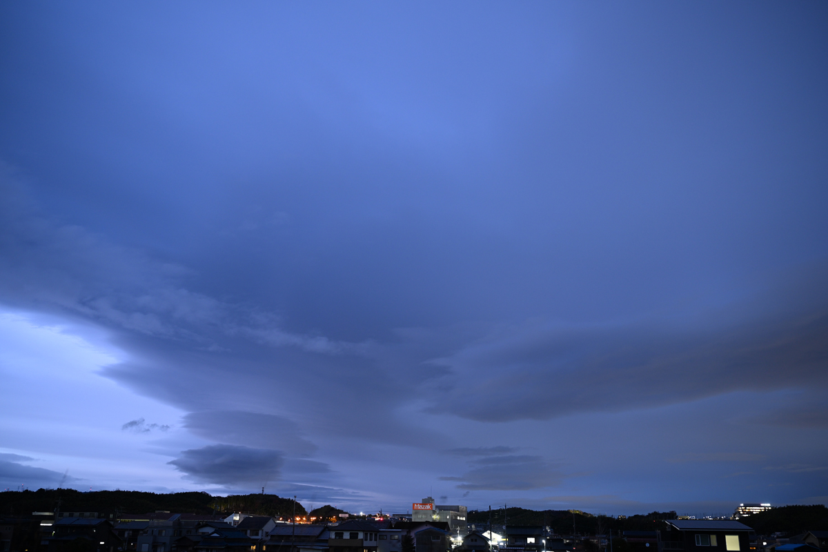 乱層雲と つるし雲 17:17 北 35mm f2 1/3秒 ISO400 数時間にわたって継続した雲。 |