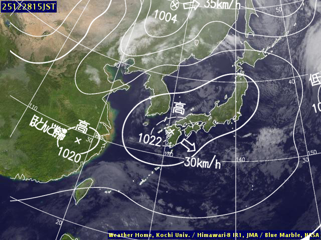 | 地上(高知大学気象情報頁赤外画像と気象庁速報天気図を合成) 15時 | |||