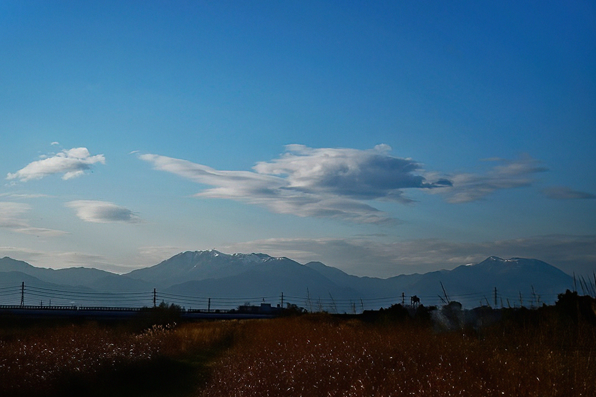 | 連日、高気圧に覆われた快晴。明け方は放射冷却のためにかなり 冷え込んで最低気温(桑名)は0.6℃でしたが、日中は陽射しにより 11.9℃まで上昇し、風が無く体感的には暖かい陽気となりました。 日中、ほとんど雲の無い快晴の空が続きました。 下層の上部から中層にかけては西風が卓越しており、この高度に やや水蒸気量の多い気流が流れてきはじめて、鈴鹿山脈の 山麓にレンズ雲や つるし雲の群れが生まれました。 |