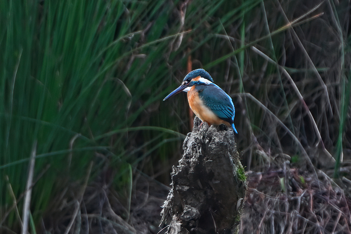 | 2026年になりました。今年もよろしくお願いします。 今日も夕方、員弁川の中州にて。 下流の方、300mくらいにいたカワアイサの群れが泳ぎながら接近。 それでも150mくらいは離れていて、かなり無理をしての拡大撮影。 全部で12羽ほどの群れで、メスが多く、オスは3羽だでした。 ミサゴが下流から上流へ、向かい風に逆らって飛翔。 河川に沿ってかなり長い距離を移動するようです。 カワセミは、昨年前の定番ポイントに2度登場。 この場所は堤防上からも見えるのですが、今日いた中州の 場所からは肉眼で認めるのが難しいくらいの距離で、テレコン 2個をかませて絞り込む、無理矢理の拡大撮影をしました。 夏場によく来ていたメスの個体はここでワンタッチリターン ばかりでしたが、最近来るポスの個体はここで滞在すること が多くなってきました。時間帯によって撮影場所を変えて いこうかと考えています。 |