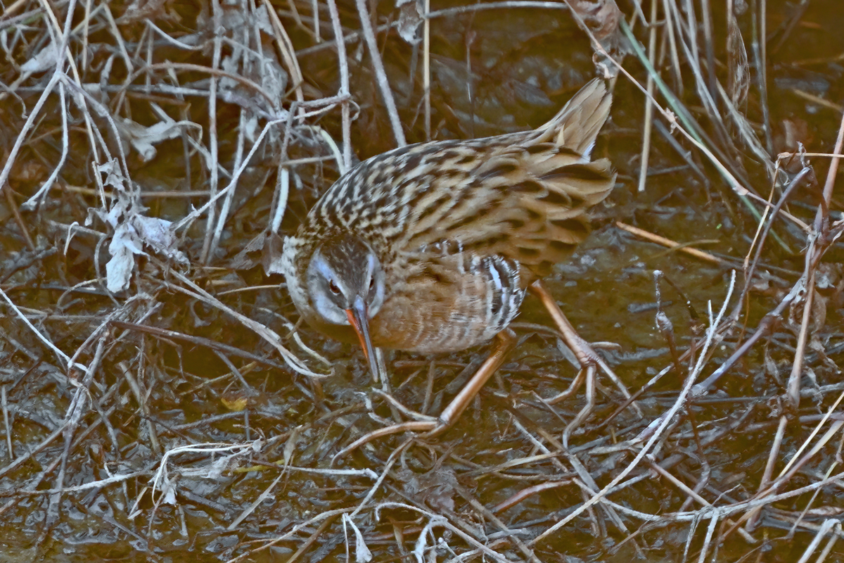 | 夕方の員弁川。 モズが縄張りを点検するかのように、巡回しており、ハクセキレイと セグロセキレイも追い払われてしましました。 日没の頃、クイナが姿を見せて、今日も水路を渡るための飛翔を目撃。 飛翔の撮影を意識していたものの、クイナが姿を見せたとき、撮影機材 から少し離れており、すぐに戻ったものの、間に合わず・・・でした。 かなり暗くなってから、別の場所に移動したクイナの排泄シーンを偶然、 撮影することができました。今季はクイナの飛翔撮影が重点目標です。 |