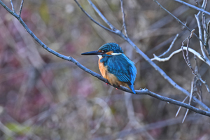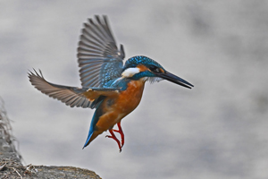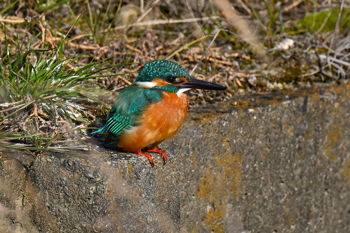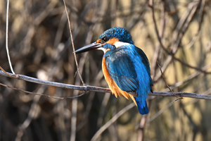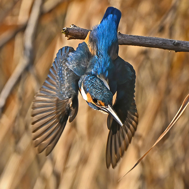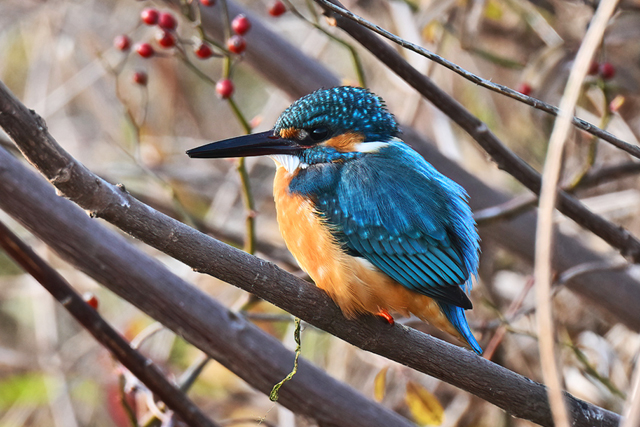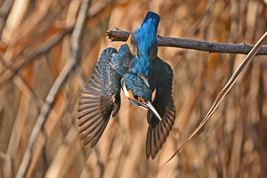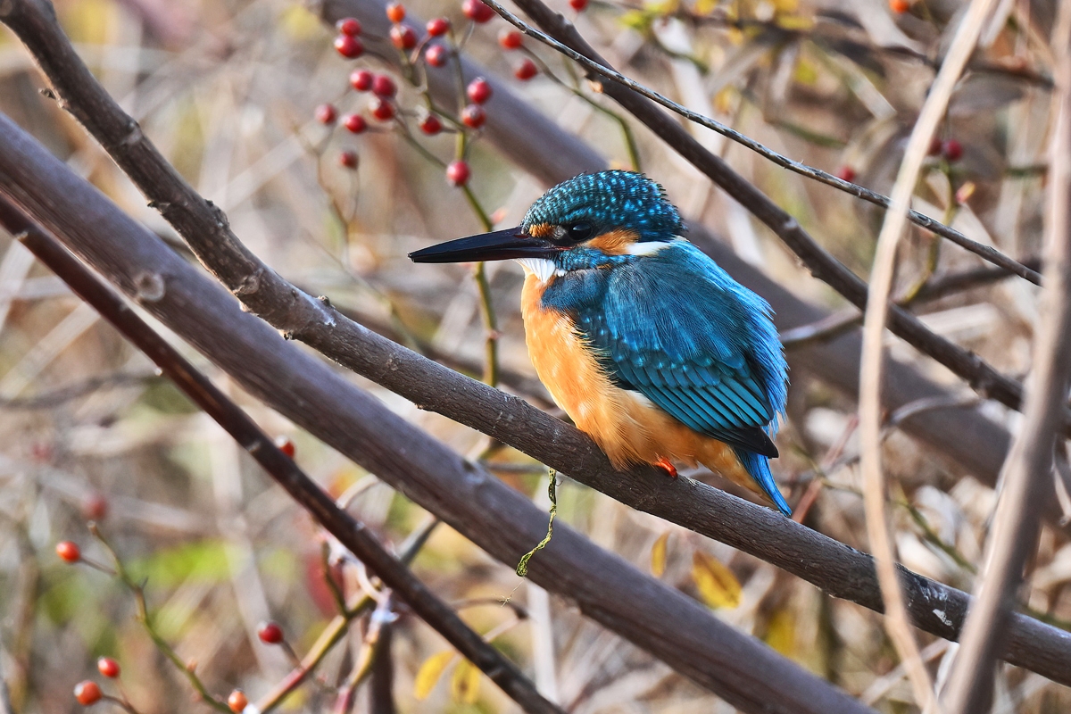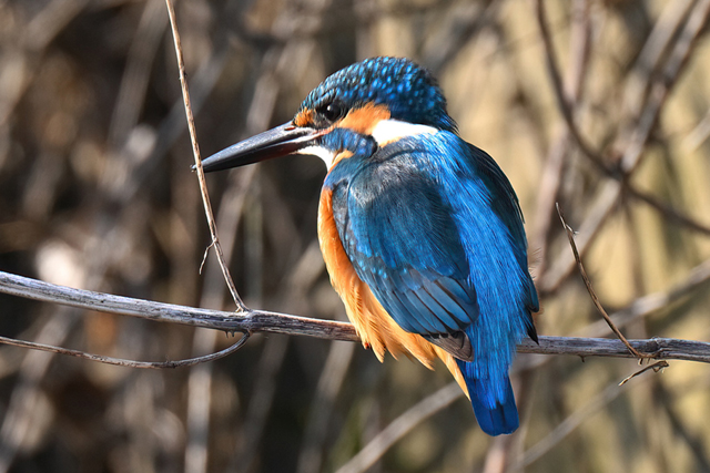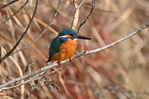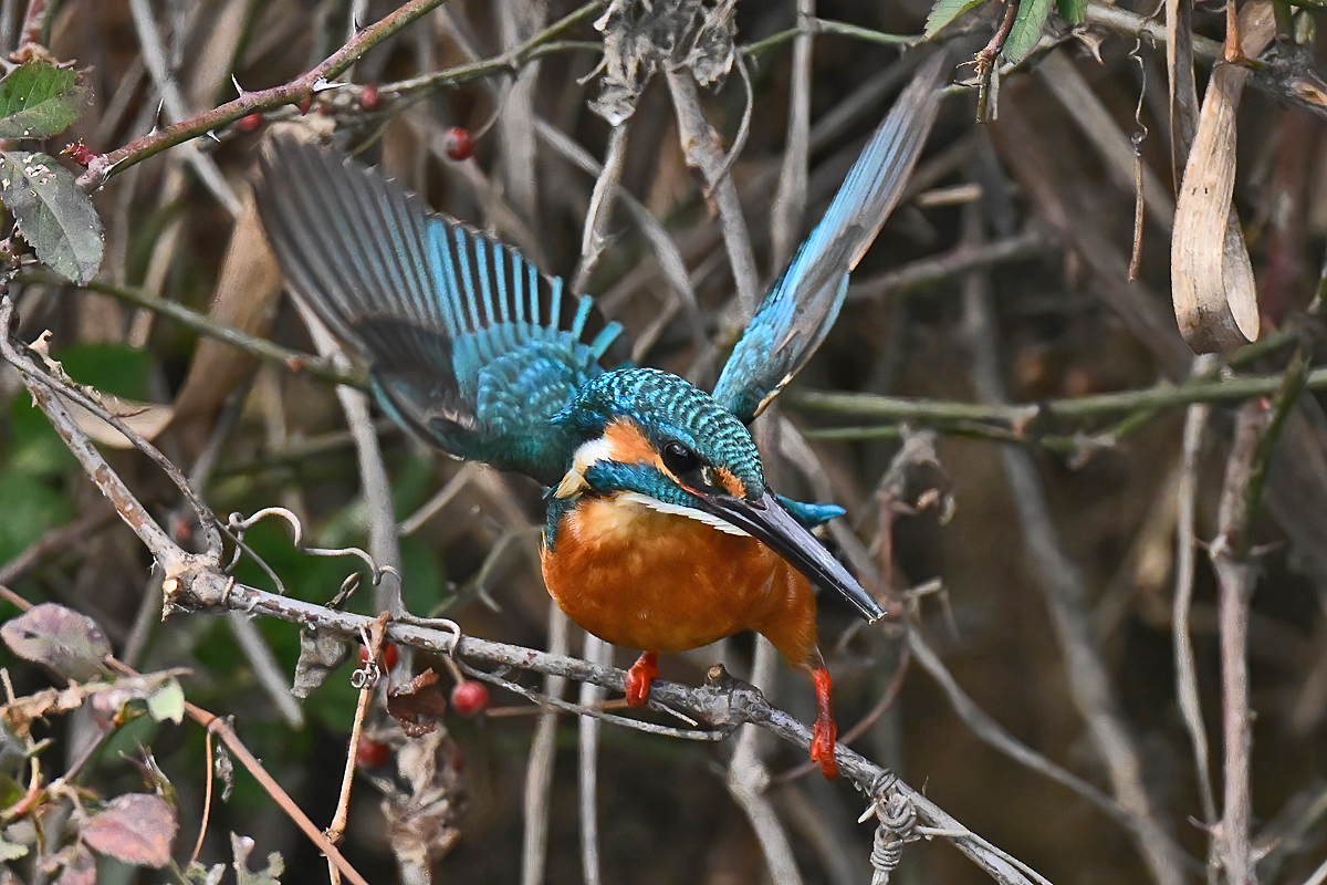 | 午後、昨日と同じく、員弁川流域北側の小さな用水路にて、カワセミを撮影。 昨日のページにコメントしたように、カワセミが2羽いたのではないかという 推測は正しく、2羽のカワセミがもつれ合って飛ぶシーンを目撃しました。 オスの方を撮影し続けましたが、太陽が雲に隠れたり、照ってきたりと、 刻々と光線状態が変化し、さまざまなカワセミの色合いが見られました。 ゆっくりと追った結果、10m以内の近距離撮影もたくさんありました。 今日は連射の効くカメラを使用して飛翔シーンもたくさん狙いました。 機材をリュックに入れて歩いて行ったので、三脚の持参をサボったのは ちょっと後悔・・・・。 構え続けた腕は、パンパンの筋肉痛になりました。 |