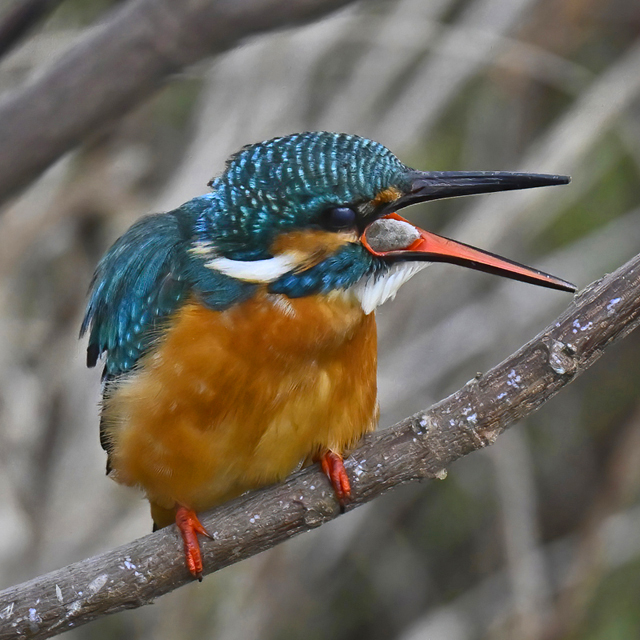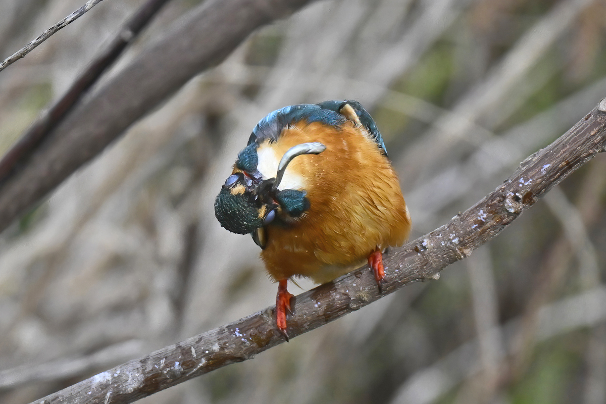 | 寒気が入って曇り空。員弁川付近の水路にて。 昼に短時間しかなかったが、訪れると、カワセミ♀とカワセミ♂の 両方が近い場所で、待ってくれていたかのように留まっていました。 メスの個体も今日は近めの距離で遭遇。 オスの個体はとにかく警戒心が緩く、5mくらいでも大丈夫。 飛翔を狙うために、後ずさりして10mの距離を確保。 今日は白いペレットを飛ばすシーンも撮影できました。 |