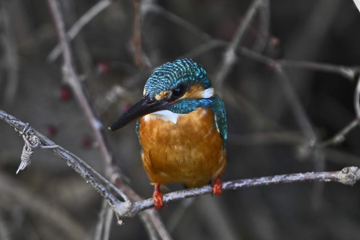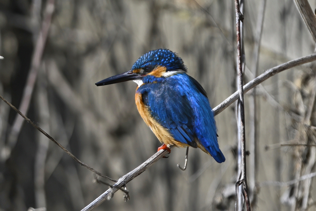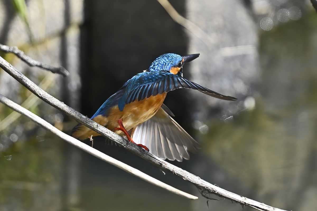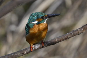 | 晴天のもと、用水路のカワセミ。 オスとメスが静かに接近して留まっている光景に遭遇。 繁殖期がそろそろ近いのかも・・・? 飛翔や飛び込みを狙うも、冷たい突風が吹き、 カワセミもじっとしていることが多く、やがて 2時間ほどで、こちらのからだがもたずに終了。 晴天、順光〜サイド光、または日陰もあり、 バリエーションに富んだ美しい姿が多く見られました。 |