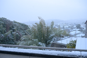 | 未明に雪が強く降って、積雪の朝となりました。 冬型はゆるんだものの、今日も断続的に雪雲の降水雲が流れて きましたが、地上での降水は雪ではなく雨で、虹もあらわれました。 |