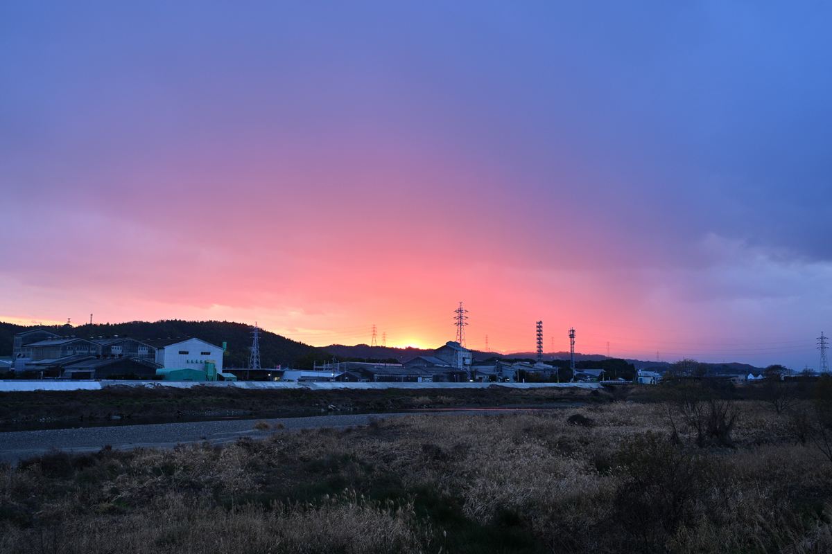 | 「冷たい小雨、乱層雲の夕焼け」(三重県桑名市) | |||