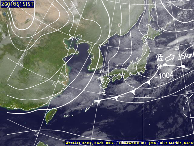 | 地上(高知大学気象情報頁赤外画像と気象庁速報天気図を合成) | |||