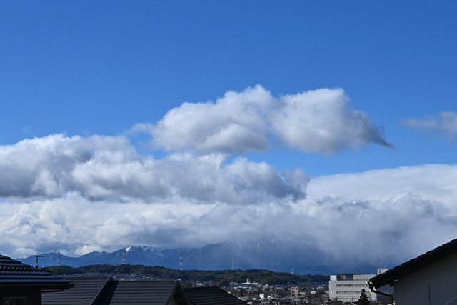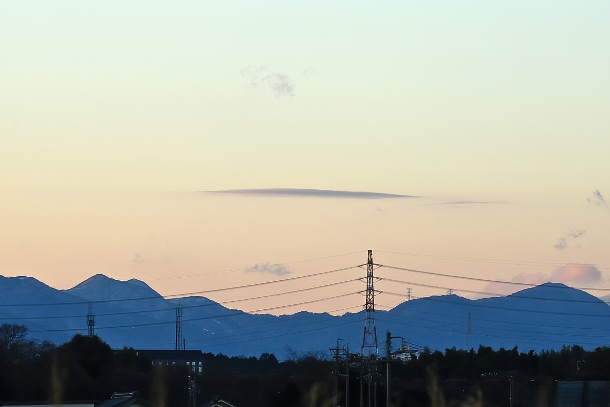 | 「山麓に残る雪の降水雲/遠方のレンズ雲」(三重県桑名市) | |||