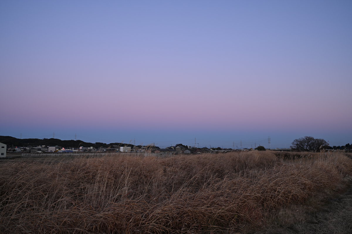 | 大陸の高気圧が張り出してきました。最低気温(桑名)が0.7℃と冷え込んだ朝、 層積雲が広がり、午前中には鈴鹿山脈の山麓に雪の降水雲が残っていました。 日中は晴天となって、気温が上昇し、風もおだやかに。 夕方、関ヶ原方面の遠方に美しいレンズ雲があらわれ、快晴の 日没後の東空にはコントラストの高い地球影が見られました。 |