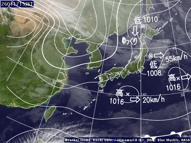 | 地上(高知大学気象情報頁赤外画像と気象庁速報天気図を合成) | |||