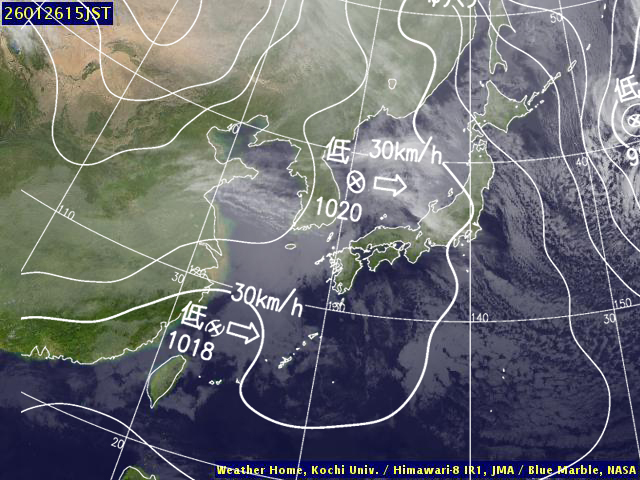 | 地上(高知大学気象情報頁赤外画像と気象庁速報天気図を合成) | |||