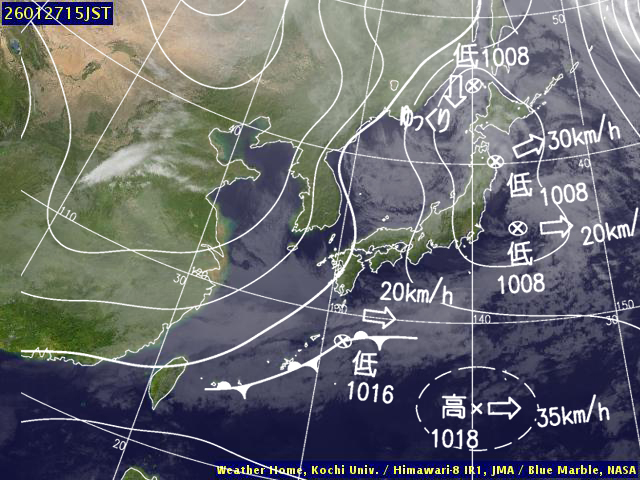 (高知大学気象情報頁赤外画像と気象庁速報天気図を合成)