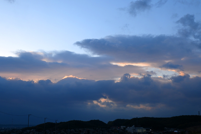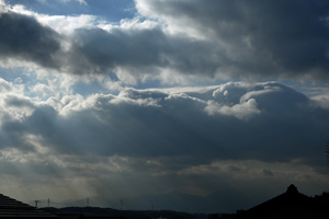 冬の層積雲が覆う一日で、鈴鹿山脈の山麓には高度の異なる層積雲。
