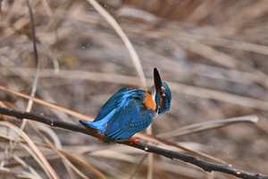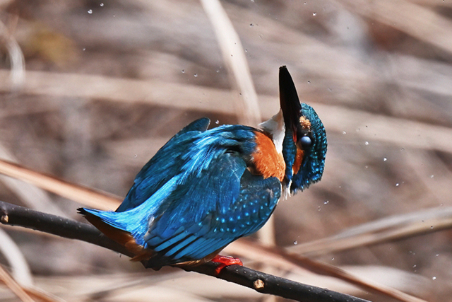 | 水しぶきを飛ばす、首回旋。 | 順光に近い。 | ||