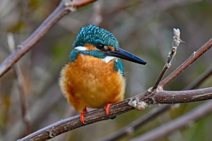 昼頃、晴天の員弁川付近の用水路にて、カワセミ。 相変わらず鮮やかな色彩を呈するオスのカワセミが 太陽-カワセミ-観察者の位相角により緑〜青に変化。 警戒心の強いメスのカワセミも接近して撮影できました。 |