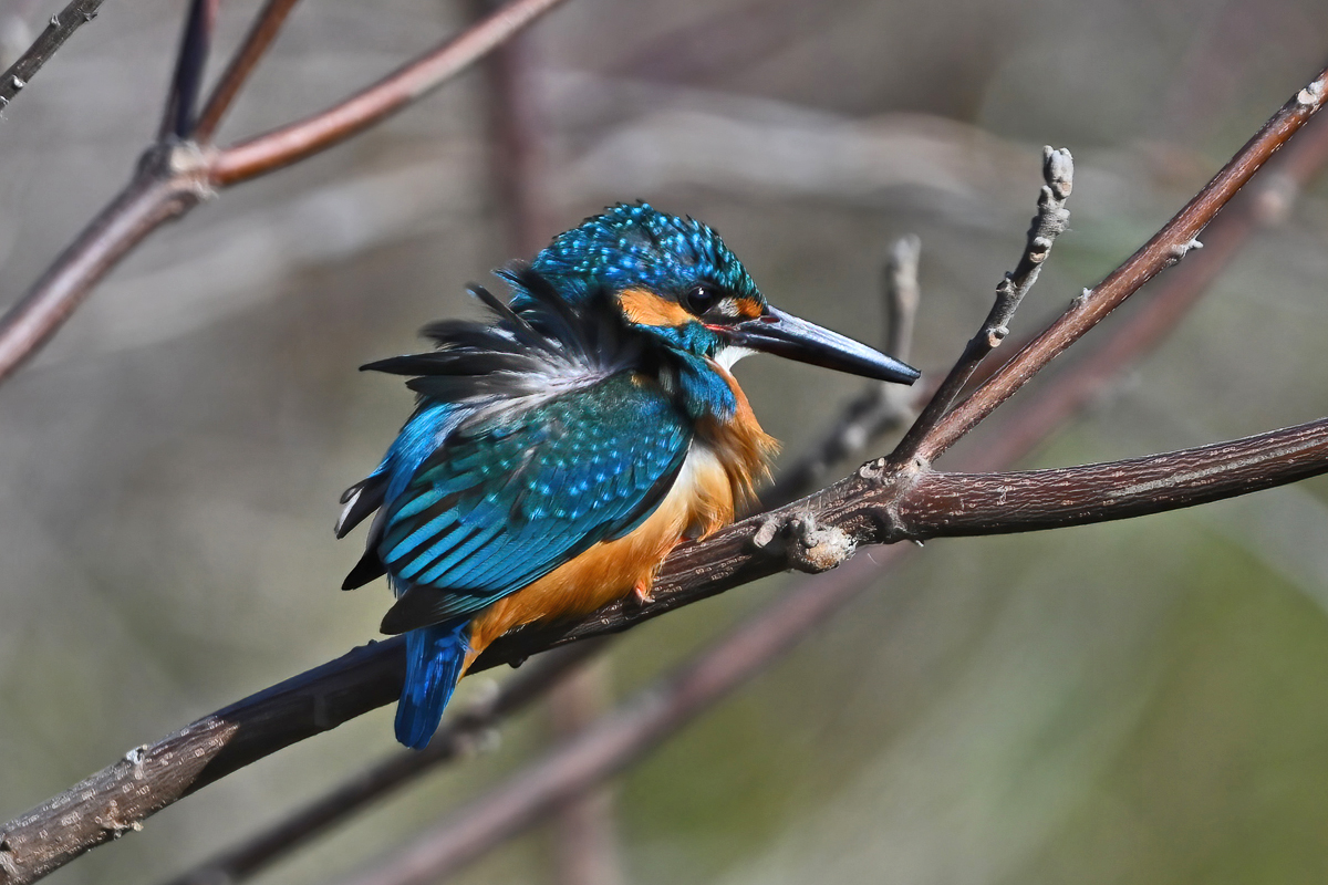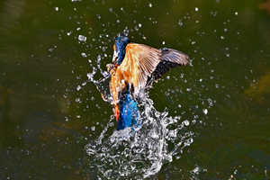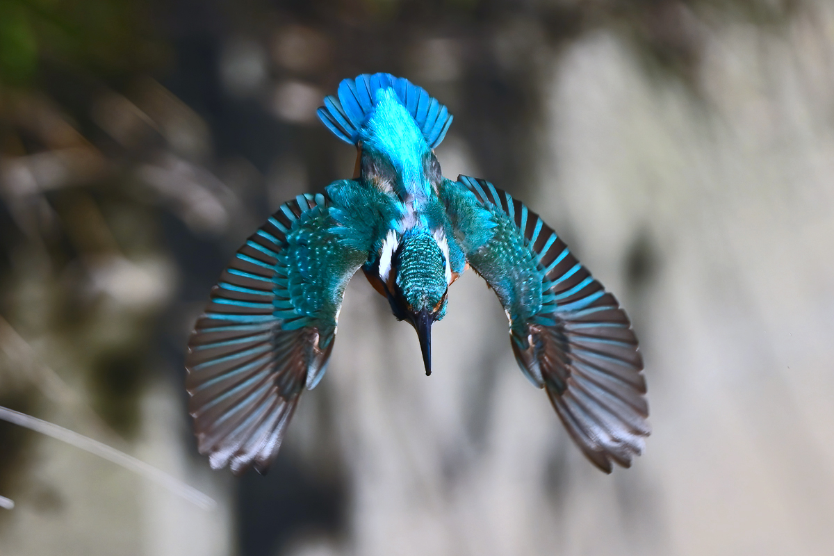 | 員弁川付近の用水路にて。 ここに来れば必ずいる、警戒心の強いカワセミ♀。 こちらから見えているときに気づかれないのは稀。 今日は雲良く、かなり近い距離で撮影できました。 しばらく待つと、オスも登場。冷たい強風にカワセミも 撮影者もあおられているなかで、飛び込みを2回撮影。 |